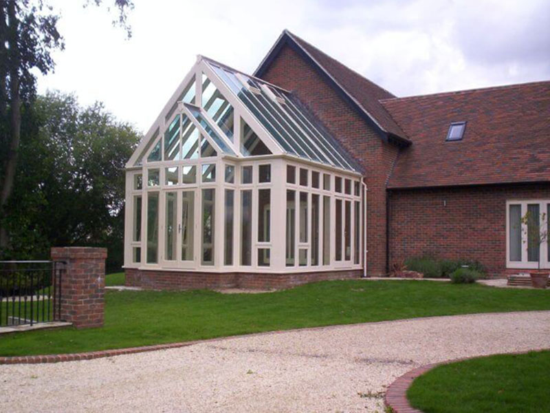 There are now designs using all three construction materials, for the frame work, which can be of dual colour. Whilst this opportunity might appeal initially, make sure you view one of these buildings carefully, as because from many positions inside and out, you will often see two colours and from experience we find that this outcome is not always ultimately pleasing, particularly for example if you have white inside and a dark brown externally – some suggest this may appear like wearing odd socks, so do be confident that it will be your best choice.